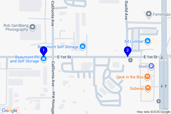 Our first Beaumont facility is at 190 East First Street, right in the center of town near the Beaumont Civic Center and just a short drive from Beaumont High School. The second location sits at 251 West 1st Street, also along First Street, keeping both options within easy reach for anyone traveling along Highway 60 or the I-10. Residents from Cherry Valley, Banning, and Calimesa will find both spots conveniently accessible.